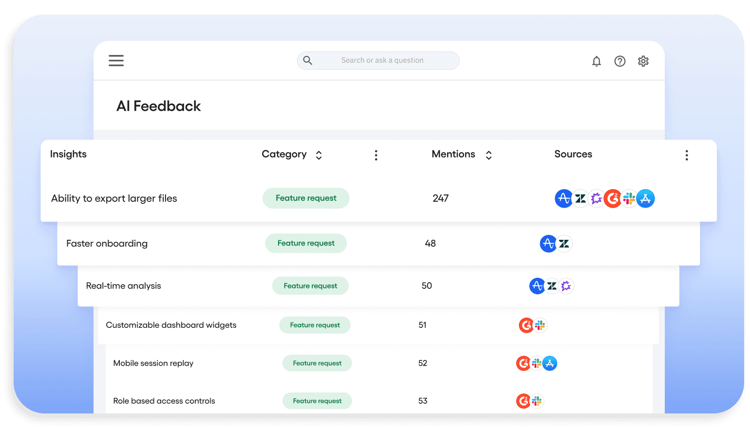 AI Feedback surfaces the signal. Connect it to behavior. Watch users struggle in Session Replay. Act.